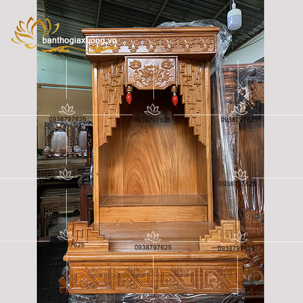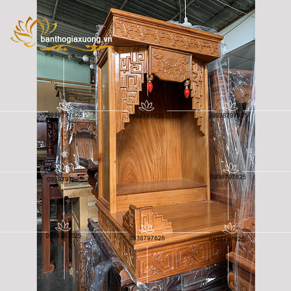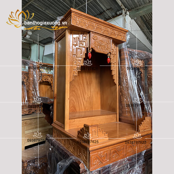 Làm từ gỗ gỏ đỏ nên bàn thờ có tông màu đẹp, sang trọng lên màu vân gỗ sáng bóng không tỳ vết. Đóng chắc chắn giúp chi việc di chuyển dễ dàng không.