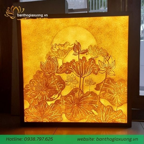 Đèn tranh trang trí hình Hoa sen . Dùng vỉ LED siêu bền ,siêu tiếp kiệm điện. Đèn có 3 chế độ ánh sáng : màu trắng ,màu vàng và trung tính .Thích hợp cho mọi không gian và thời điểm bốn mùa. Ứng dụng nhiều cho lắp đặt trang trí phòng khách ,phòng ngủ ,cầu thang ....