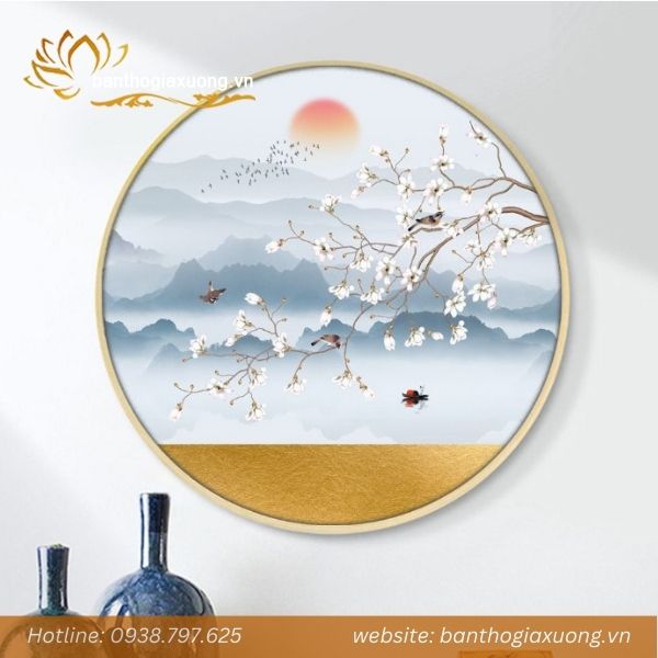 Tranh hoa sen tròn 030