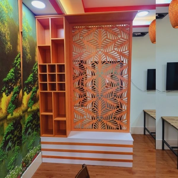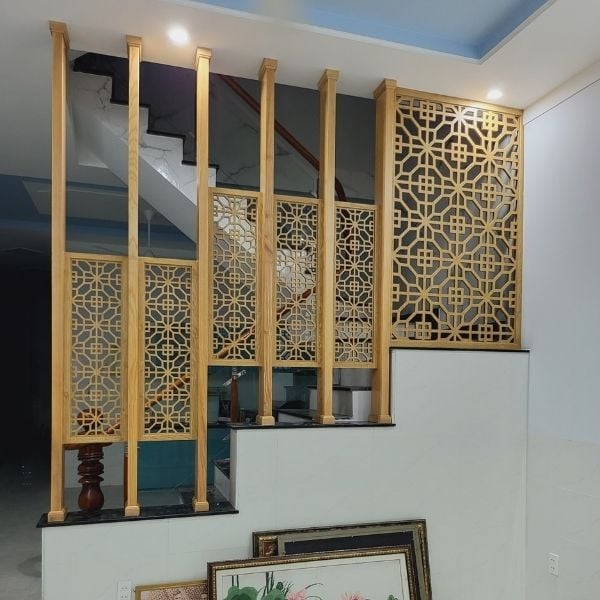 Khác với những dạng vách ngăn phòng khách thông thường, vách ngăn cnc được ứng dụng công nghệ xử lý tạo hình tinh xảo, với đường cắt chuẩn xác dứt khoát mang đến nội thất nhà đẹp.