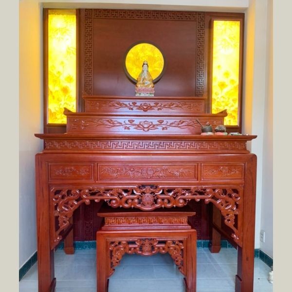 1. Bảo vệ Bàn Thờ: Vách ngăn giúp bảo vệ không gian bàn thờ và những đồ vật linh thiêng trên bàn thờ khỏi sự quấy rối, xâm phạm từ bên ngoài. Điều này giữ cho không gian bàn thờ là một nơi linh thiêng và trang nghiêm.