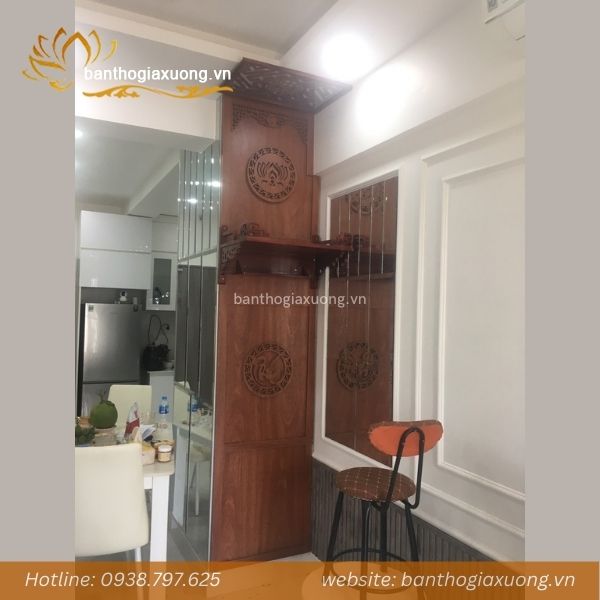 - Vách ngăn treo trang thờ phù hợp cho những không gian nhà nhỏ không có nhiều diện tích đặt bàn gia tiên nhưng vẫn có nơi để gia chủ thờ phụng ông bà tổ tiên.