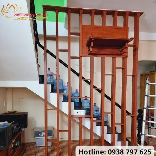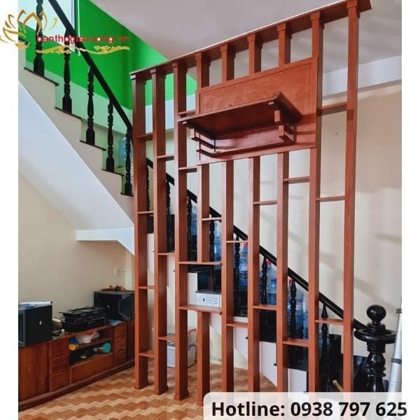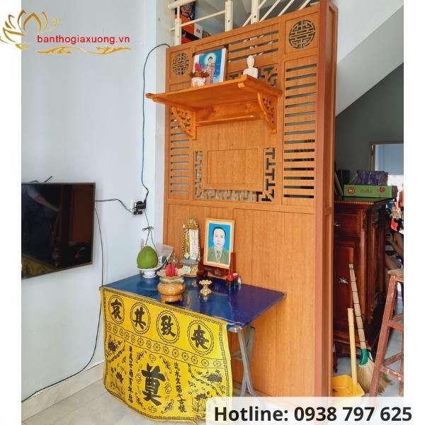 - Vách ngăn treo trang thờ phù hợp cho những không gian nhà nhỏ không có nhiều diện tích đặt bàn gia tiên nhưng vẫn có nơi để gia chủ thờ phụng ông bà tổ tiên.