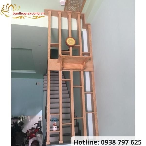- Vách được làm từ gỗ ván MDF phủ melamine cao cấp với độ dày 17mm, khung bao dày 4cm đảm bảo độ dày dặn và chắc chắc để gia chủ treo trang thờ.