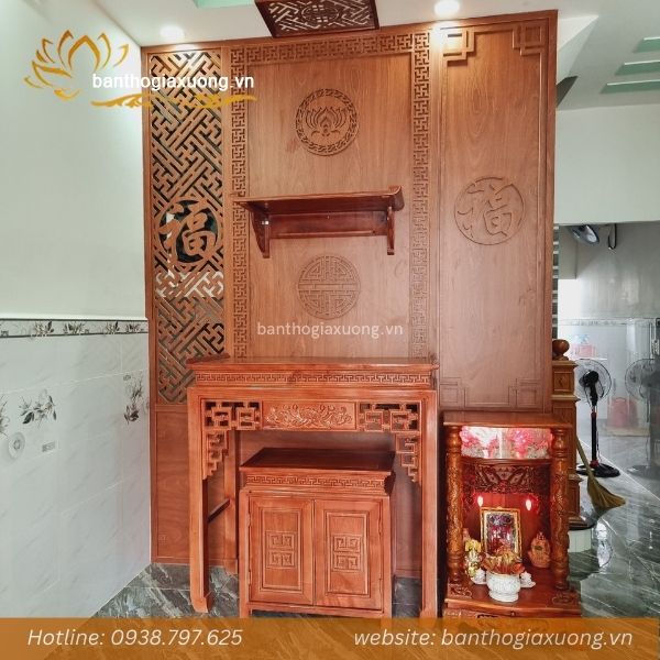 - Thiết kế hoa văn đẹp mắt, tạo điểm nhấn cho phòng khách khi gắn bàn thờ treo được trang nghiêm hơn